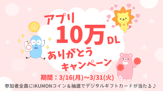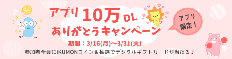 参加者全員に1,000iKUMONコインプレゼント★さらに抽選で100名さまにウェブで使えるギフトカードも当たる!