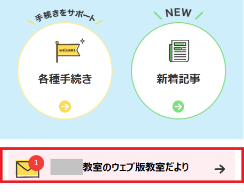 トップページにある「●●教室のウェブ版教室だより」を押す