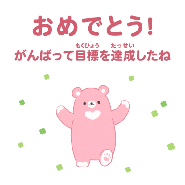 目標を達成するとキャラクターたちがお祝いしてくれます♪